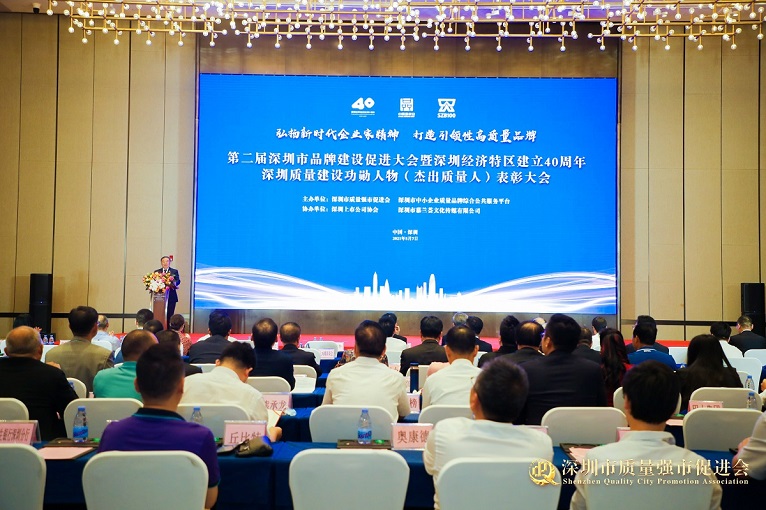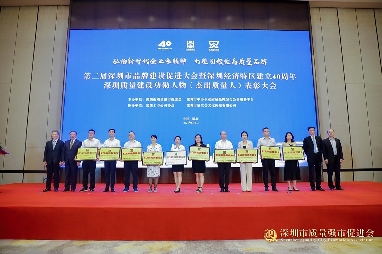 在第五个“中国品牌日”即将到来之际,第二届深圳市品牌建设促进大会暨深圳经济特区建立40周年深圳质量建设功勋人物(杰出质量人)表彰大会于5月7日在深圳顺利召开。深圳市政协副主席徐友军、深圳市原副市长陈彪等政府有关部门领导,深圳市质量强市促进会会长、原招商银行行长马蔚华及深圳品牌百强企业代表、深圳质量建设功勋人物(杰出质量人)、重点行业协会负责人、质量品牌专家、会员企业代表等300多人参加大会。