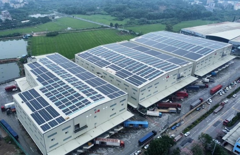 今年6月,建晟绿能投资建设的广州增城鸿昇物流工业园2.93MW分布式光伏发电项目顺利并网发电。企业供图