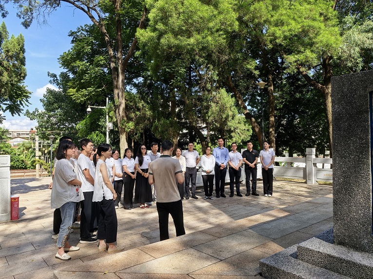 绿树苍翠,山厦革命烈士纪念碑庄严肃穆。全体党员整齐列队,肃立默哀,深切缅怀革命先烈。通过聆听讲解,同志们了解到,从大革命时期、国内革命战争时期到抗日战争、解放战争时期,山厦人民在党的领导下,为人民解放事业做出了突出贡献。纪念碑上刻着为革命英勇献身的6位山厦籍英烈以及曾在山厦一带革命活动过的11位烈士芳名,他们用鲜血和生命筑起了一座不朽的丰碑。革命先烈的英雄壮举和牺牲精神,让在场党员无不动容,受到深刻的精神洗礼和党性教育。