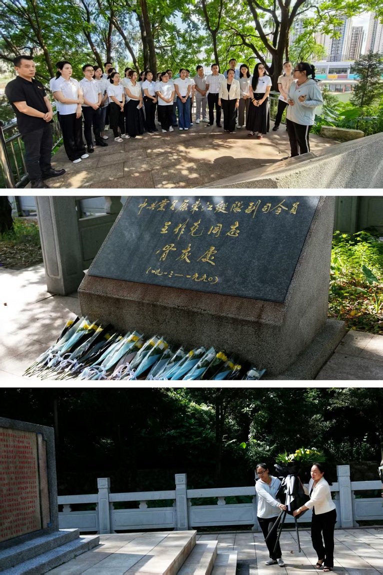 在庄重肃穆的氛围中,山厦社区党委委员刘德欢同志与文科股份党委林瑞君同志代表全体党员,向山厦革命烈士纪念碑敬献花篮,表达对革命先烈的无限哀思和崇高敬意。随后,党员们移步至东江纵队副总司令王作尧同志的骨灰安放处,怀着无比崇敬的心情,向这位为华南抗日斗争立下赫赫功勋的革命前辈鞠躬致敬并献上鲜花,追思其光辉业绩和崇高风范。