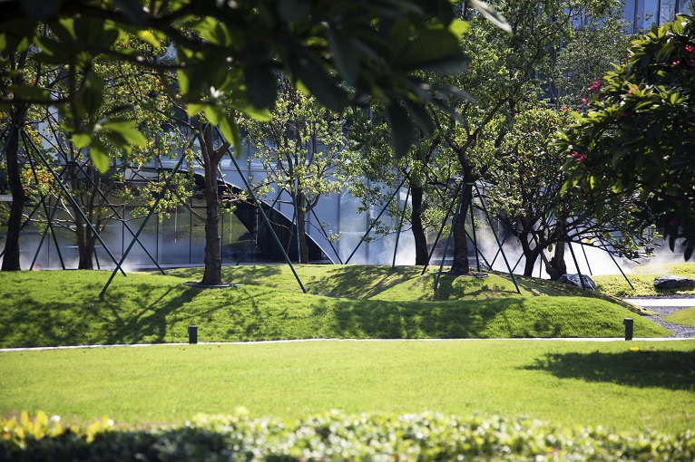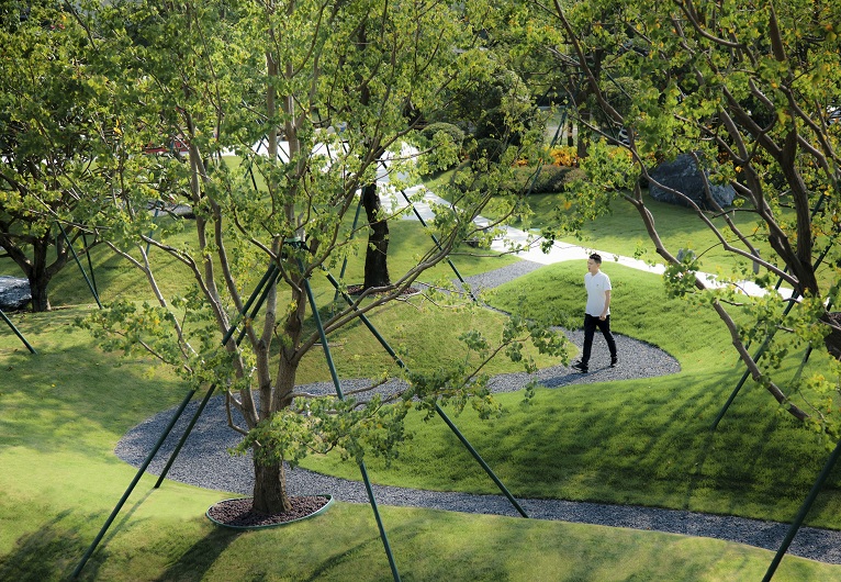 在花园中,用灌木勾勒出独特的“浮岛”形状,使这些植物仿佛在一片绿色海洋中“漂泊”。周围点缀着自然的乌柏林,仿佛是时光的延续,给人一种意犹未尽的感觉。步行其中,仿佛与现实连接起来,一切浮躁都被消散,只剩下宁静和静谧。