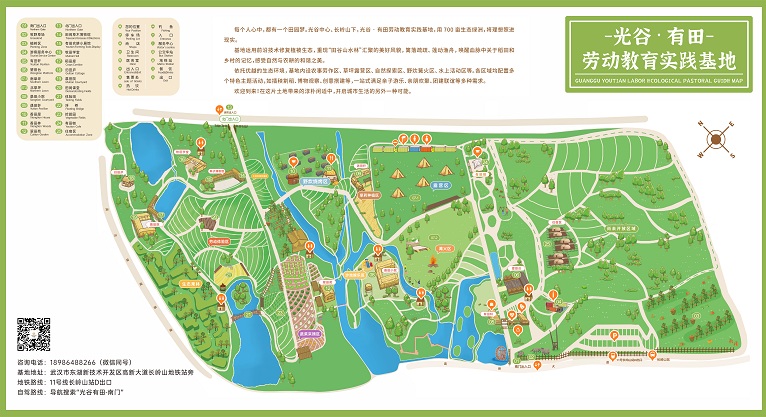 景区内设有多个特色主题区,包括农事劳作区、草坪露营区、自然探索区、野炊篝火区和水上活动区等,旨在为游客提供多元化的活动体验。从亲子游乐、亲朋欢聚到团建联谊,光谷有田能够满足各种需求,是家庭出游和团队活动的理想选择。